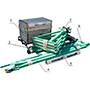 1 - Электрическая лебедка для подъема опускания груза (в ящике); 2 - Колонна; 3 - Поворотная рама; 4 - Стрела (верхняя часть, нижняя часть); 5 - ноги с опорными домкратами; 6 - стяжки. В комплекте поставки также имеются железобетонные КОНТРГРУЗЫ в количестве 8 штук (внешний вид см. выше на общем виде крана).