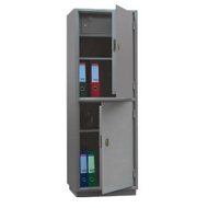Бухгалтерский шкаф КБ032т/КБС032т выполнен из стали 1.4 мм, две двери изнутри усилены металлической коробкой (0.8мм). Одна секция с двумя фиксированными полками и трейзером. КБ032т запирается на замки типа «Kale». КБС032т – на замки «Просам». Корпуса шкафов покрыты серой порошковой краской производства Финляндии или Франции. Применяются для хранения канцелярских принадлежностей и документации.