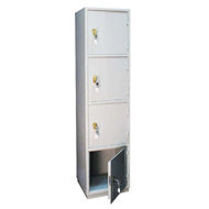 Бухгалтерский шкаф КБ06/КБС06 выполнен из стали 1.4 мм, четыре двери изнутри усилены металлической коробкой (0.8мм). Одна секция с тремя фиксированными полками. КБ06 запирается на замки типа «Kale». КБС06 – на замки «Просам». Корпуса шкафов покрыты серой порошковой краской производства Финляндии или Франции. Применяются для хранения канцелярских принадлежностей и документации.