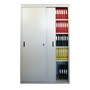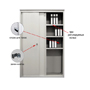 Архивный шкаф AL 1896 с двумя дверцами-«купе» и кнопочным замком. Внутри – три усиленных полки, положение которых можно менять (шаг 50 мм). Максимальная нагрузка на полку – 125 кг. Шкаф вмещает в себя до 68 папок А4. Металлический корпус (0.8 мм) собирается на саморезах. Покрытие корпуса RAL 7035 серого цвета (полимерное). Доставляется в разобранном состоянии.