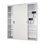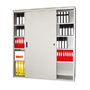 Архивный шкаф AL 2012 с двумя дверцами-«купе» и кнопочным замком. Внутри – четыре усиленных полки, положение которых можно менять (шаг 50 см). Максимальная нагрузка на полку – 100 кг. Шкаф вмещает в себя до 105 папок А4. Металлический корпус (0.8 мм) собирается на саморезах. Покрытие корпуса RAL 7035 серого цвета (полимерное). Доставляется в разобранном состоянии.