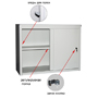 Архивный шкаф ALS 8896 с двумя дверцами-«купе» и кнопочным замком. Внутри – одна полка, положение которой можно менять (шаг 50 мм). Максимальная нагрузка на полку – 125 кг. Шкаф вмещает в себя до 34 папок А4. Металлический корпус (0.8 мм) собирается на саморезах. Покрытие корпуса RAL 7035 серого цвета (полимерное). Доставляется в разобранном состоянии.