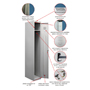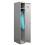 Шкаф для одежды ШРС-11-300 – базовый модуль наборного ряда, к которому крепятся приставные секции (ДС). Он укомплектован верхней полочкой, крючками и планкой для вешалок. Помимо стандартного замка, может быть оснащен ригельной или навесной системой (опционно). Отдельно можно заказать и обувную полочку. Цвет: корпуса и дверец – серый RAL 7035 (полимерная окраска), или синий RAL 5015 (для фасада).