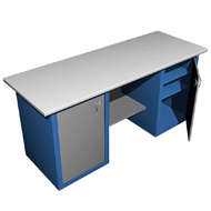Такой верстак удобно использовать в мастерской, слесарном цехе, швейном помещении, а также в изготовлении различных предметов из дерева и металла, от мелких деталей до аксессуаров. Верстак имеет две тумбы: обе оборудованы распашной дверцей, за которой можно поместить любое рабочее оборудование.